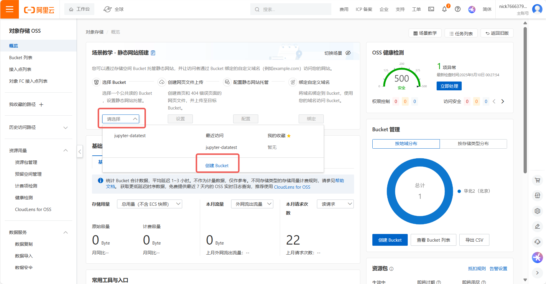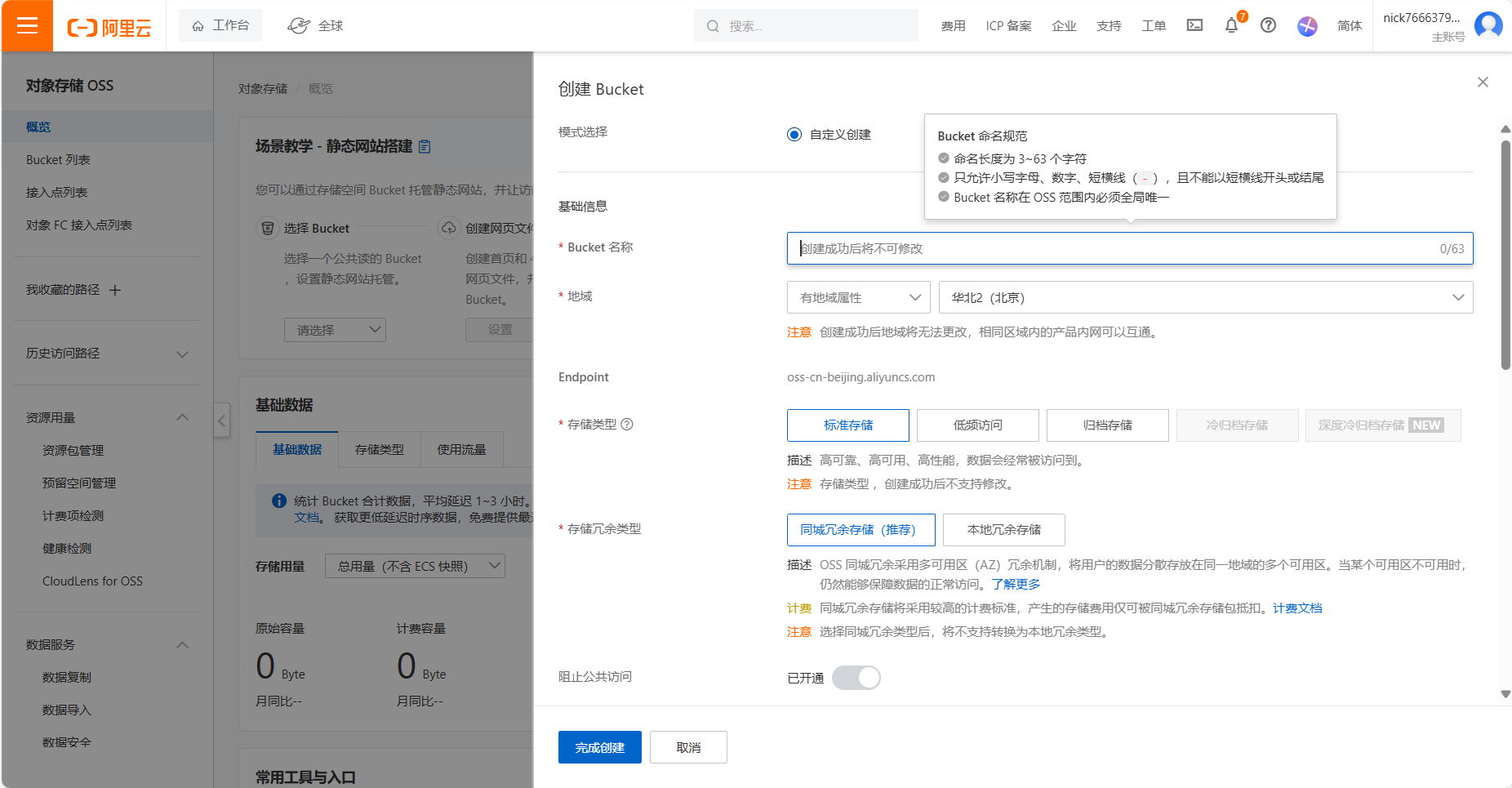 创建对象存储 OSS 标准桶